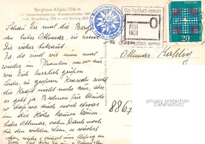 72683530 alte Postkarte Pfronten Ostallgaeu Bayern Berghaus im Allgaeu mit Branderschrofen Straussberg Saeuling postalisch gelaufen Erhaltung siehe scans [LiesaD40] KatCode: 11110009777159