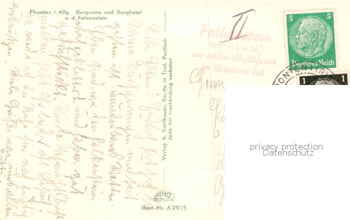 73808558 Pfronten Ostallgaeu Bayern Burgruine Falkenstein postalisch gelaufen Erhaltung siehe scans [WerneD78] alte Postkarte Wern Katcode 11110009777159