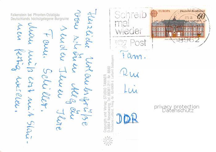72628480 alte Postkarte Pfronten Ostallgaeu Bayern Burgruine Falkenstein Fliegeraufnahme postalisch gelaufen Erhaltung siehe scans [WerneD78] KatCode: 11110009777159