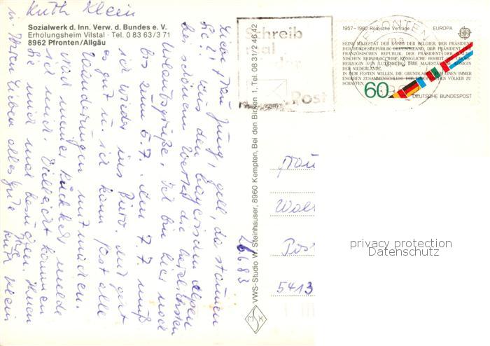 73858817 Pfronten Ostallgaeu Bayern Erholungsheim Vilstal Aufenthaltsraum Kinderspielplatz postalisch gelaufen Erhaltung siehe scans [FriedD77] alte Postkarte Frie Katcode 11110009777159