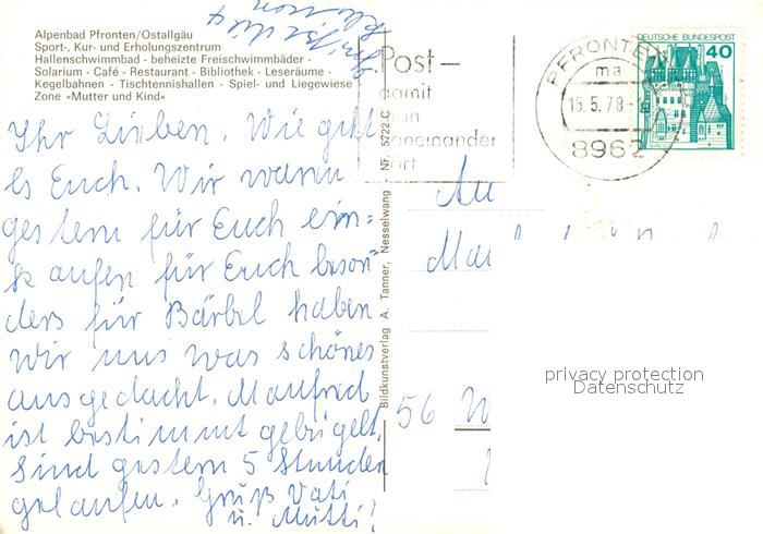 73177132 alte Postkarte Pfronten Ostallgaeu Bayern Erholungszentrum postalisch gelaufen Erhaltung siehe scans [NatalD47] KatCode: 11110009777159