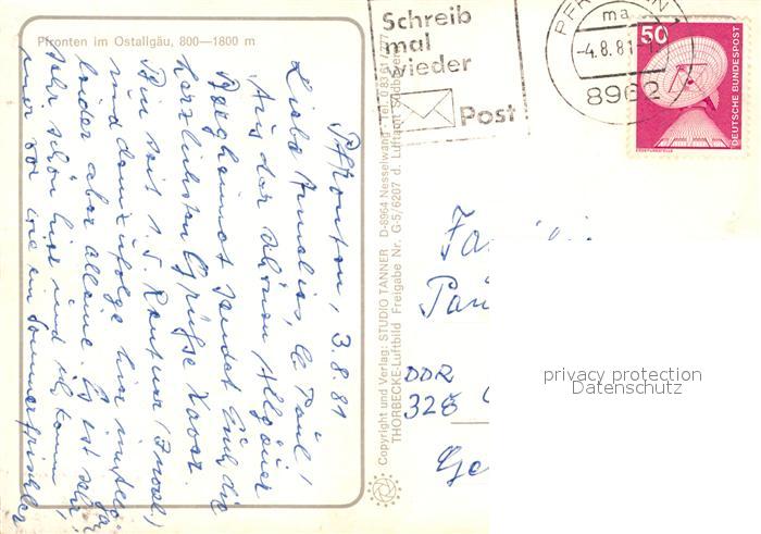 73125095 alte Postkarte Pfronten Ostallgaeu Bayern Fliegeraufnahme postalisch gelaufen Erhaltung siehe scans [PaolaD17] KatCode: 11110009777159