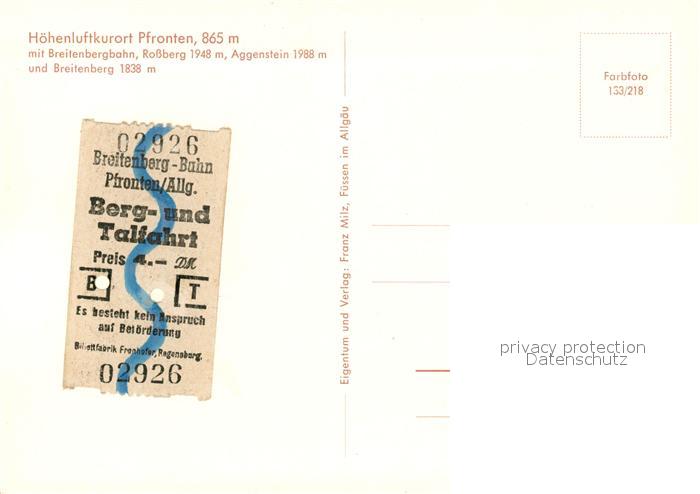 73093041 Pfronten Ostallgaeu Bayern Fliegeraufnahme Breitenbergbahn Rossberg Aggenstein Breitenberg postalisch nicht gelaufen Erhaltung siehe scans [KathaD81] KatCode: 11110009777159