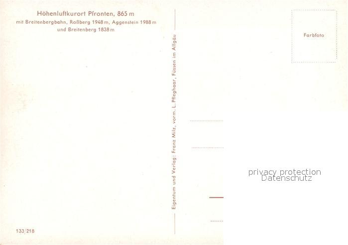 72990352 Pfronten Ostallgaeu Bayern Fliegeraufnahme mit Breitenbergbahn Rossberg Aggenstein postalisch nicht gelaufen Erhaltung siehe scans [LiesaD40] KatCode: 11110009777159