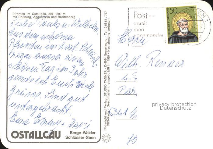 72533014 alte Postkarte Pfronten Ostallgaeu Bayern Fliegeraufnahme mit Rossberg Aggenstein Breitenberg postalisch gelaufen Erhaltung siehe scans [LiesaD40 kt094box] KatCode: 11110009777159