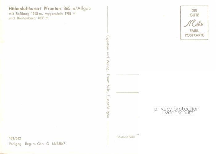 72919086 Pfronten Ostallgaeu Bayern Fliegeraufnahme mit Rossberg Aggenstein und Breitenberg postalisch nicht gelaufen Erhaltung siehe scans [LiesaD40] KatCode: 11110009777159