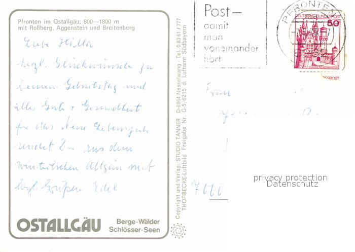 72840044 alte Postkarte Pfronten Ostallgaeu Bayern Fliegeraufnahme mit Rossberg Aggenstein und Breitenberg postalisch gelaufen Erhaltung siehe scans [LiesaD40] KatCode: 11110009777159