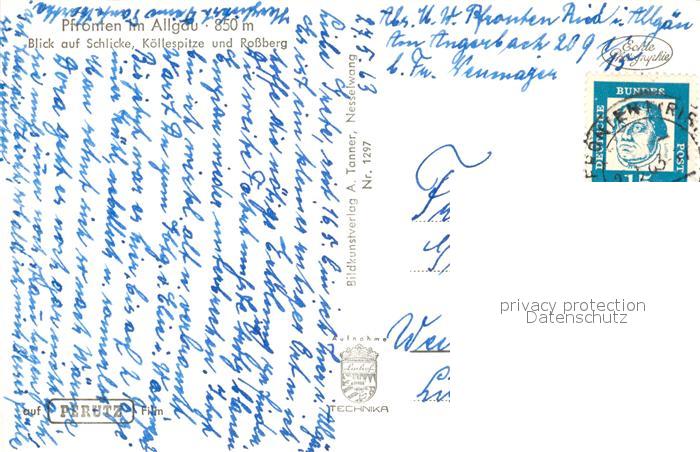 73154158 alte Postkarte Pfronten Ostallgaeu Bayern Fliegeraufnahme mit Schlicke Koellerspitze Rossberg postalisch gelaufen Erhaltung siehe scans [LiesaD40] KatCode: 11110009777159