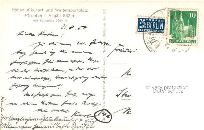 43352151 Pfronten Ostallgaeu Bayern Fliegeraufnahme mit Zugspitze postalisch gelaufen Erhaltung siehe scans [WerneD78] alte Postkarte Wern Katcode 11110009777159