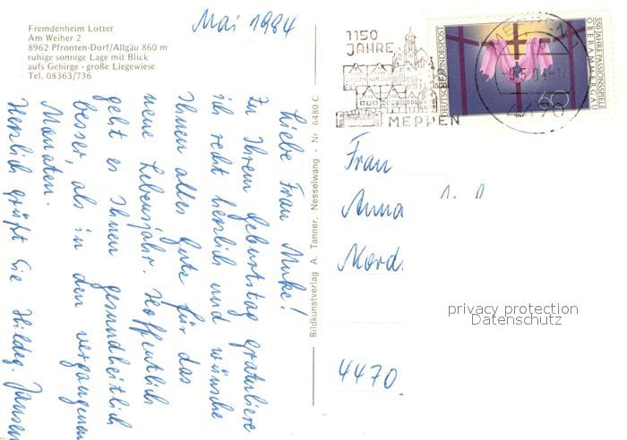 73653507 alte Postkarte Pfronten Ostallgaeu Bayern Fremdenheim Lotter postalisch gelaufen Erhaltung siehe scans [WerneD78] KatCode: 11110009777159