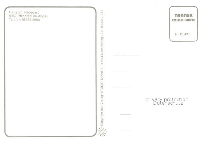 73653201 Pfronten Ostallgaeu Bayern Gaestehaus Pension Haus St. Hildegard Motiv mit Kirche Allgaeuer Alpen postalisch nicht gelaufen Erhaltung siehe scans [FriedD77] KatCode: 11110009777159