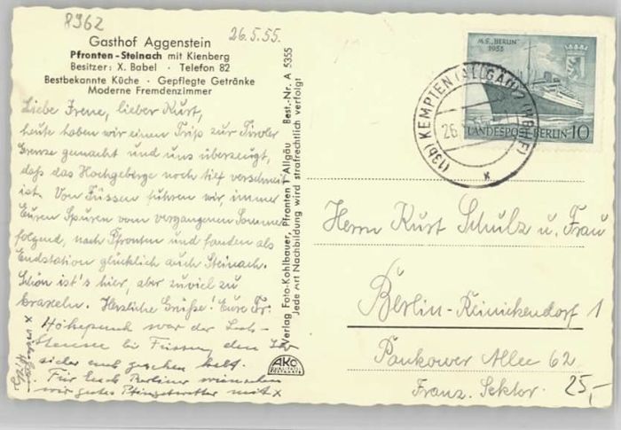 40246486 Pfronten Ostallgaeu Bayern Gasthof Zum Aggenstein postalisch gelaufen Alte Ansichtskarte Postkarte alte Postkarte Katcode 11110009777159