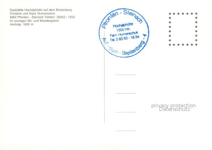 73859802 Pfronten Ostallgaeu Bayern Gaststätte Hochalphütte postalisch nicht gelaufen Erhaltung siehe scans [WerneD78] Wern Katcode 11110009777159