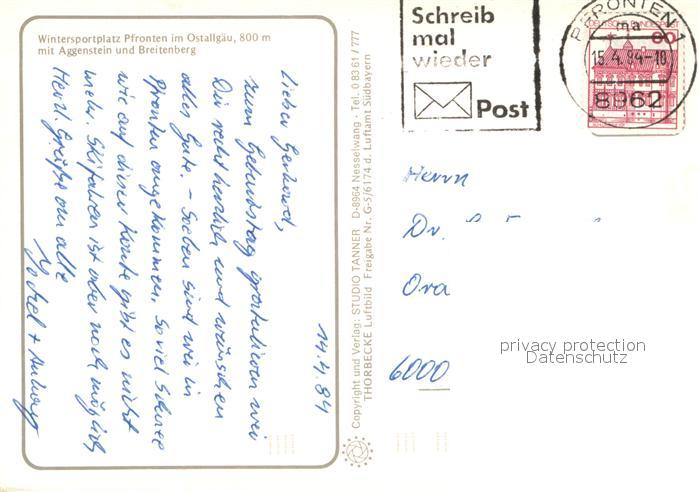 73745731 Pfronten Ostallgaeu Bayern Gesamtansicht im Schnee m. Aggenstein u. Breitenberg postalisch gelaufen Erhaltung siehe scans [LiesaD40] alte Postkarte Lies Katcode 11110009777159