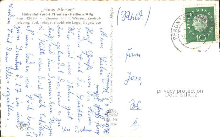 71918724 alte Postkarte Pfronten Ostallgaeu Bayern Haus Aletsee postalisch gelaufen Erhaltung siehe scans KatCode: 11110009777159