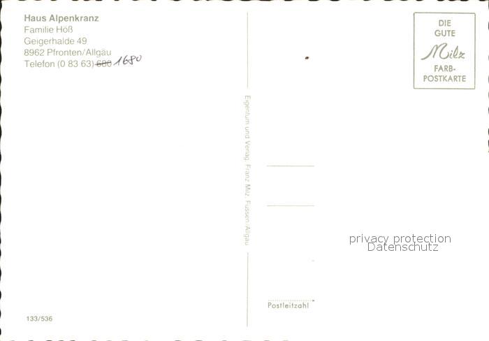 72046918 Pfronten Ostallgaeu Bayern Haus Alpenkranz postalisch nicht gelaufen Erhaltung siehe scans KatCode: 11110009777159
