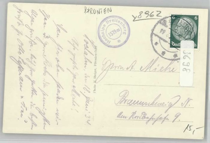 40246561 Pfronten Ostallgaeu Bayern Hochalm Huette postalisch gelaufen Alte Ansichtskarte Postkarte alte Postkarte Katcode 11110009777159