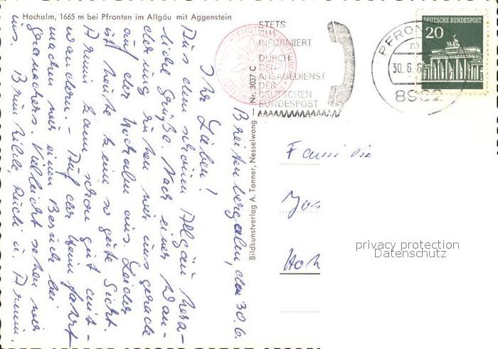 72219383 alte Postkarte Pfronten Ostallgaeu Bayern Hochalm mit Aggenstein postalisch gelaufen Erhaltung siehe scans KatCode: 11110009777159