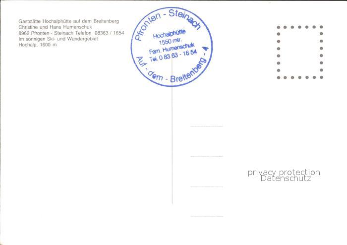 72376137 Pfronten Ostallgaeu Bayern Hochalph?tte Steinach postalisch nicht gelaufen Erhaltung siehe scans KatCode: 11110009777159