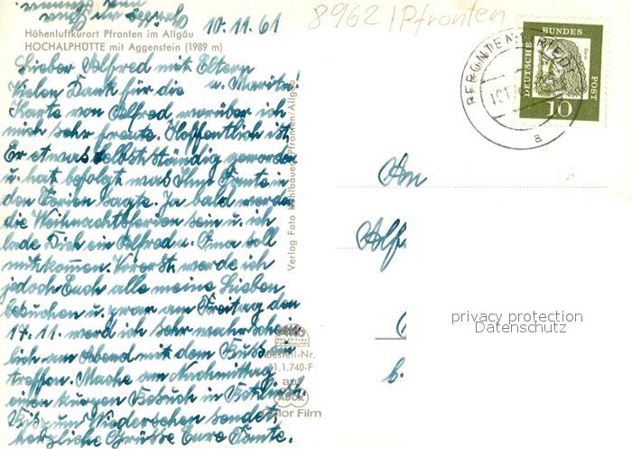 73176195 alte Postkarte Pfronten Ostallgaeu Bayern Hochalphuette Aggenstein postalisch gelaufen Erhaltung siehe scans [NatalD47] KatCode: 11110009777159