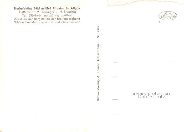 72987423 Pfronten Ostallgaeu Bayern Hochalphuette Seilbahn postalisch nicht gelaufen Erhaltung siehe scans [WerneD78] KatCode: 11110009777159