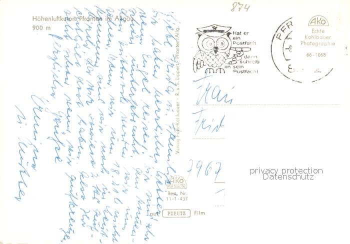 73335423 alte Postkarte Pfronten Ostallgaeu Bayern Hoehenluftkurort Allgaeuer Alpen Fliegeraufnahme postalisch gelaufen Erhaltung siehe scans [FriedD77] KatCode: 11110009777159