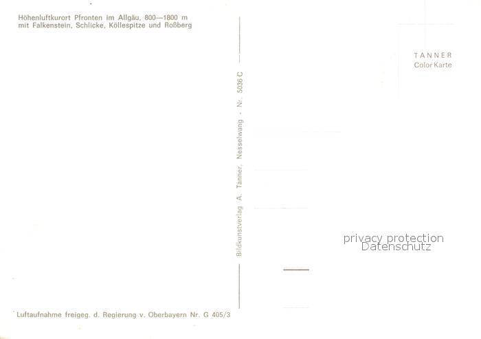 73578101 Pfronten Ostallgaeu Bayern Hoehenluftkurort Allgaeuer Alpen Fliegeraufnahme postalisch nicht gelaufen Erhaltung siehe scans [FriedD77] KatCode: 11110009777159