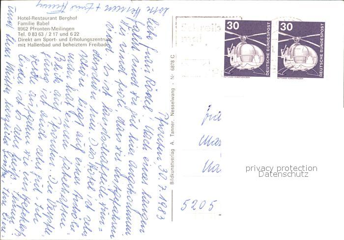 72371514 alte Postkarte Pfronten Ostallgaeu Bayern Hotel Bergrestaurant Berghof postalisch gelaufen Erhaltung siehe scans KatCode: 11110009777159