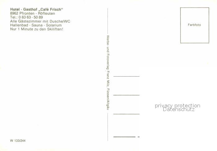 72663234 Pfronten Ostallgaeu Bayern Hotel Cafe Frisch postalisch nicht gelaufen Erhaltung siehe scans [NatalD47] KatCode: 11110009777159