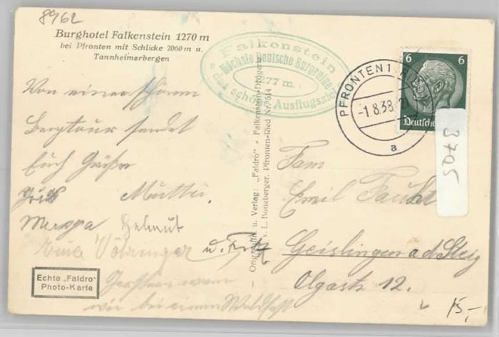 40246562 Pfronten Ostallgaeu Bayern Hotel Falkenstein postalisch gelaufen Alte Ansichtskarte Postkarte alte Postkarte Katcode 11110009777159