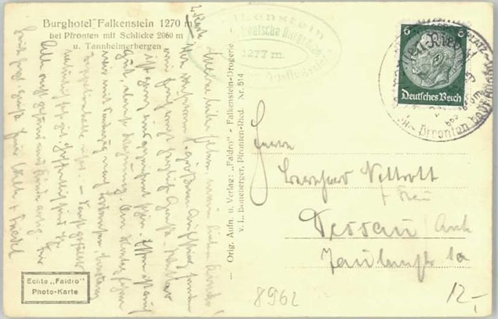 40246994 Pfronten Ostallgaeu Bayern Hotel Falkenstein postalisch gelaufen Alte Ansichtskarte Postkarte alte Postkarte Katcode 11110009777159