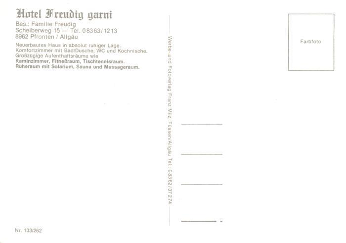 73945513 Pfronten Ostallgaeu Bayern Hotel Freudig Restaurant Fremdenzimmer postalisch nicht gelaufen Erhaltung siehe scans [FriedD77] Frie Katcode 11110009777159