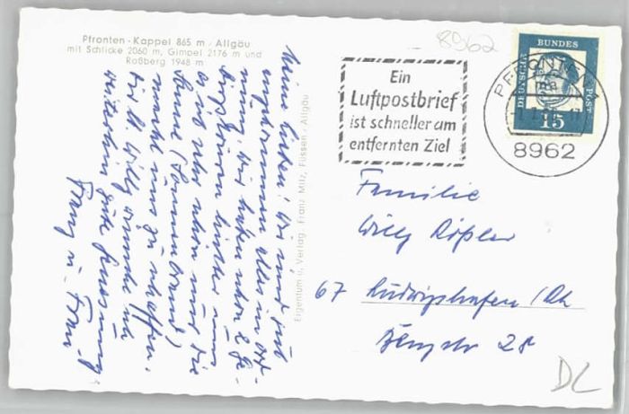 40246588 Pfronten Ostallgaeu Bayern Kappel postalisch gelaufen Alte Ansichtskarte Postkarte alte Postkarte Katcode 11110009777159