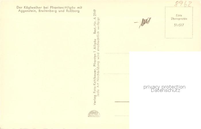43352150 Pfronten Ostallgaeu Bayern Koeglweiher Aggenstein Breitenberg und Rossberg postalisch nicht gelaufen Erhaltung siehe scans [WerneD78] Wern Katcode 11110009777159