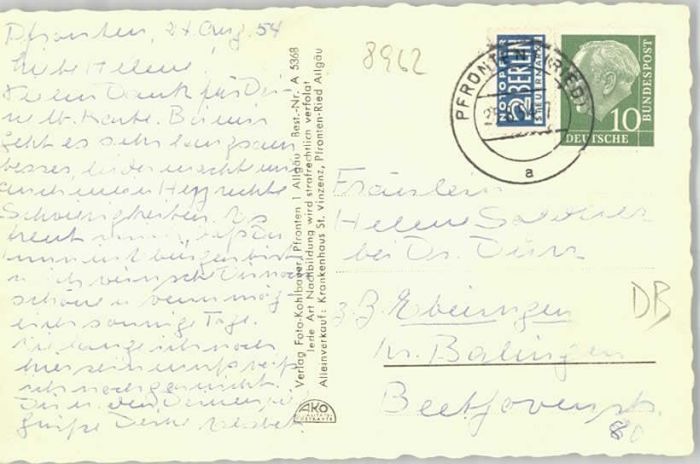 40246924 Pfronten Ostallgaeu Bayern Krankenhaus St. Vinzenz postalisch gelaufen Alte Ansichtskarte Postkarte alte Postkarte Katcode 11110009777159