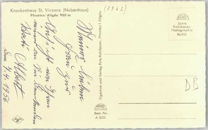 40246925 Pfronten Ostallgaeu Bayern Krankenhaus St. Vinzenz Postalisch nicht gelaufen Alte Ansichtskarte Postkarte Katcode 11110009777159