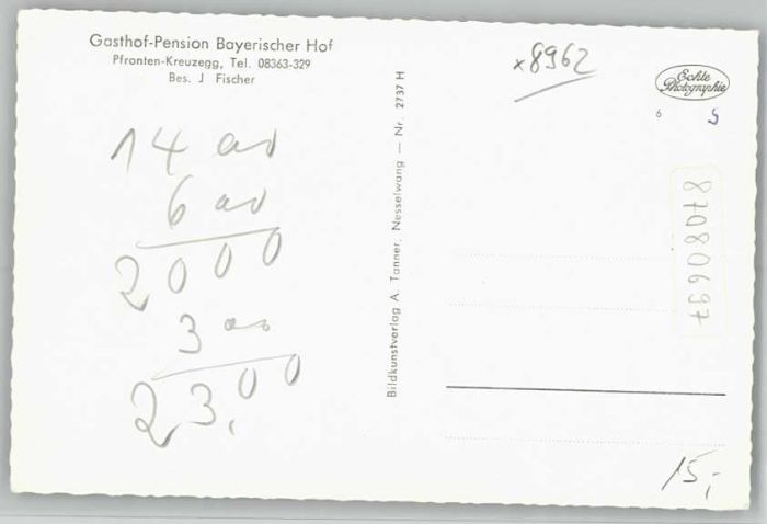 40246529 Pfronten Ostallgaeu Bayern Kreuzegg Gasthof Pension Bayrischer Hof Postalisch nicht gelaufen Alte Ansichtskarte Postkarte Katcode 11110009777159