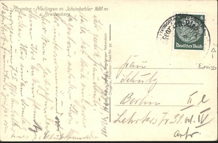 40989650 Pfronten Ostallgaeu Bayern Meilingen Schoenkahler Breitenberg postalisch gelaufen Alte Ansichtskarte Postkarte alte Postkarte Katcode 11110009777159