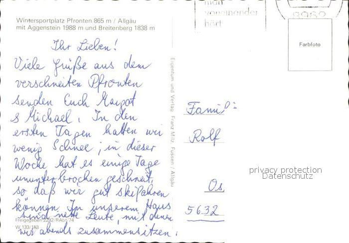 72064755 alte Postkarte Pfronten Ostallgaeu Bayern mit Aggenstein und Breitenberg postalisch gelaufen Erhaltung siehe scans KatCode: 11110009777159