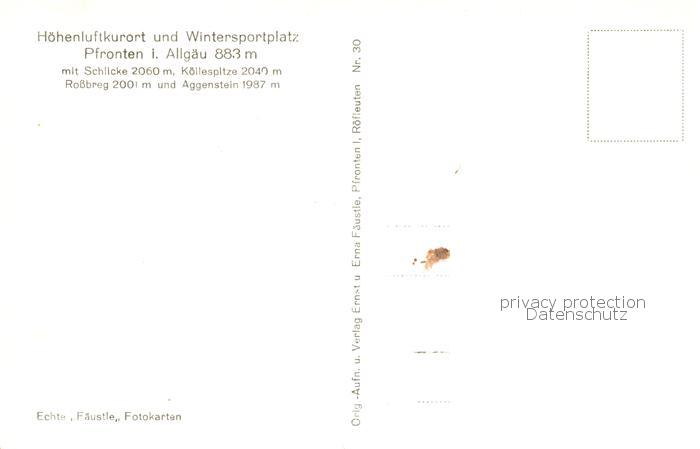73800760 Pfronten Ostallgaeu Bayern mit Schlicke Koellespitze Rossbreg und Aggenstein postalisch nicht gelaufen Erhaltung siehe scans [WerneD78] Wern Katcode 11110009777159