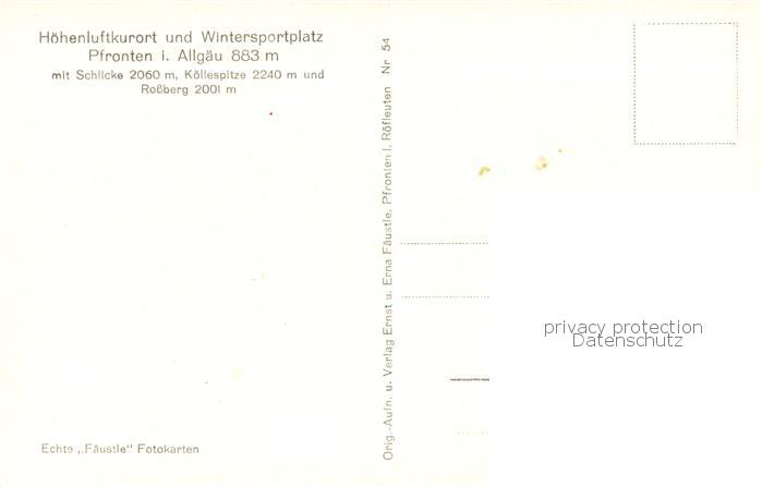 73800748 Pfronten Ostallgaeu Bayern mit Schlicke Koellespitze und Rossberg postalisch nicht gelaufen Erhaltung siehe scans [WerneD78] Wern Katcode 11110009777159