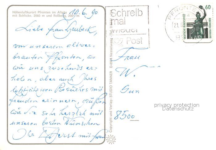 73584642 alte Postkarte Pfronten Ostallgaeu Bayern mit Schlicke Rossberg postalisch gelaufen Erhaltung siehe scans [LiesaD40] KatCode: 11110009777159