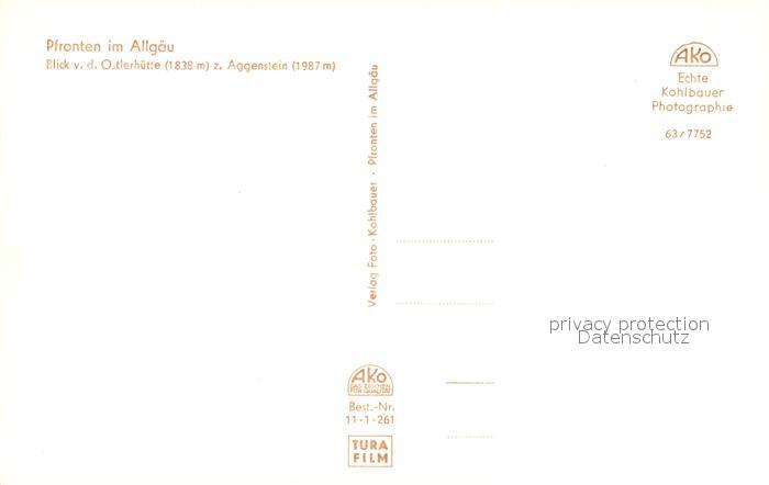 73332284 Pfronten Ostallgaeu Bayern Ortlerhuette mit Aggenstein postalisch nicht gelaufen Erhaltung siehe scans [WerneD78] KatCode: 11110009777159