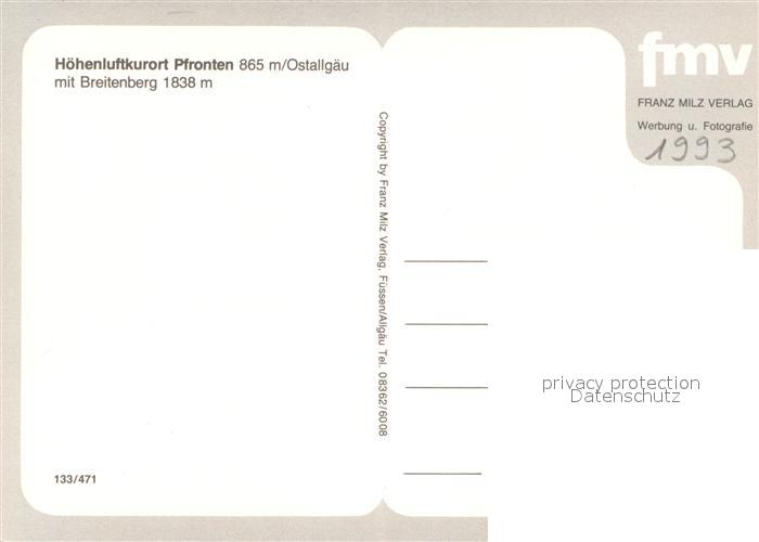 72930902 Pfronten Ostallgaeu Bayern Ortspartie mit Breitenberg postalisch nicht gelaufen Erhaltung siehe scans [LiesaD40] KatCode: 11110009777159