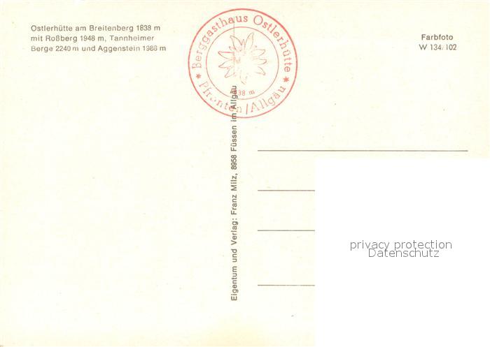 73678415 Pfronten Ostallgaeu Bayern Ostlerhuette am Breitenberg mit Rossberg Tannheimer Berge und Aggenstein im Winter postalisch nicht gelaufen Erhaltung siehe scans [FriedD77] KatCode: 11110009777159