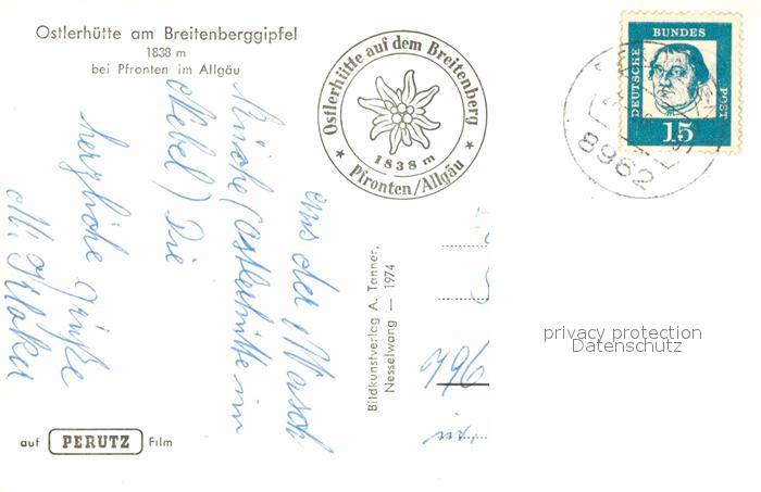 72826713 alte Postkarte Pfronten Ostallgaeu Bayern Ostlerhuette am Breitenberggipfel postalisch gelaufen Erhaltung siehe scans [LiesaD40] KatCode: 11110009777159