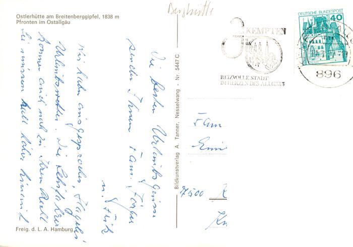 73932558 Pfronten Ostallgaeu Bayern Ostlerhuette am Breitenberggipfel postalisch gelaufen Erhaltung siehe scans [FriedD77] alte Postkarte Frie Katcode 11110009777159