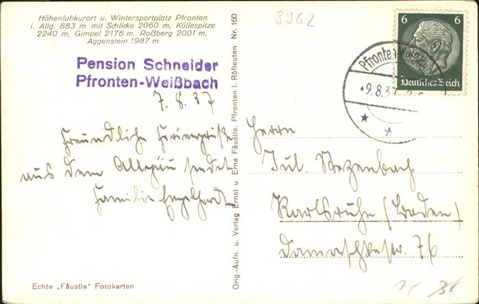 71481532 alte Postkarte Pfronten Ostallgaeu Bayern Panorama postalisch gelaufen Erhaltung siehe scans KatCode: 11110009777159