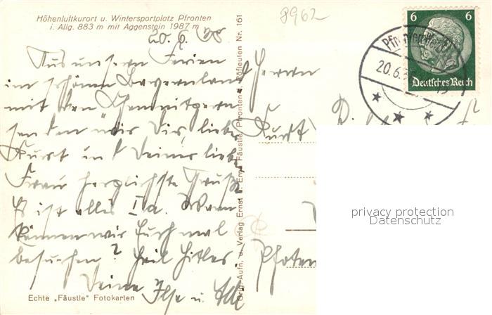 73584160 alte Postkarte Pfronten Ostallgaeu Bayern Panorama Aggenstein postalisch gelaufen Erhaltung siehe scans [KathaD81] KatCode: 11110009777159