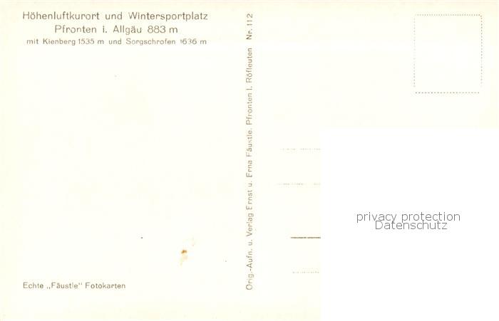 73800747 Pfronten Ostallgaeu Bayern Panorama mit Kienberg und Sorgschrofen postalisch nicht gelaufen Erhaltung siehe scans [WerneD78] Wern Katcode 11110009777159